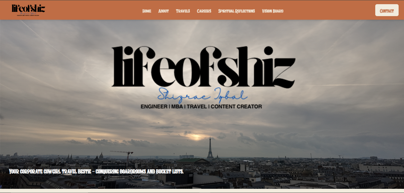 Official site for an Engineer & Content Creator: Shizrae, featuring her Journey, Personality, Brand Timeline, and exclusive content.