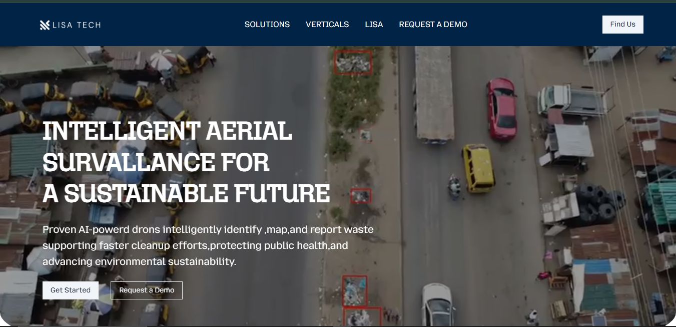 Lisa Tech website is a Landing Page for an AI-powerd drones that intelligently identify ,map,and report waste.