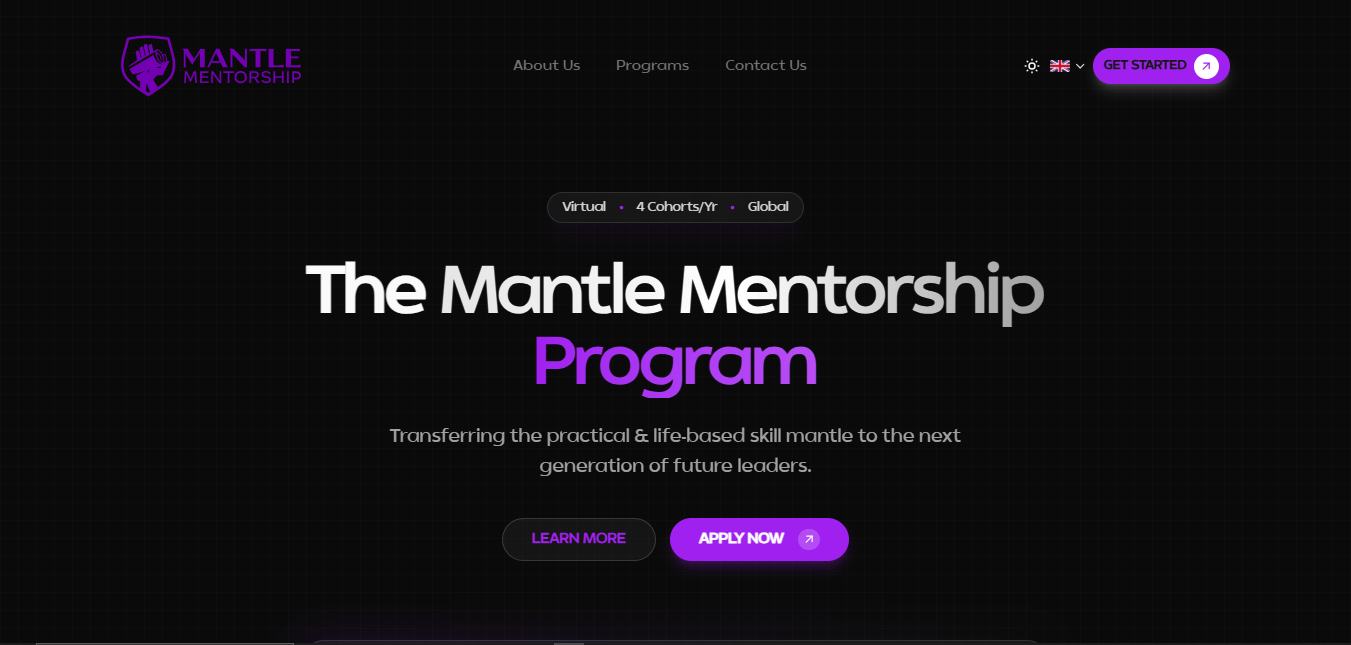 The Mantle Mentorship Program is a virtual mentorship platform dedicated to transferring practical and life-based skills to the next generation of leaders. Running 4 cohorts per year globally, it connects mentees with experienced mentors to provide clarity, career direction, and personal development support.